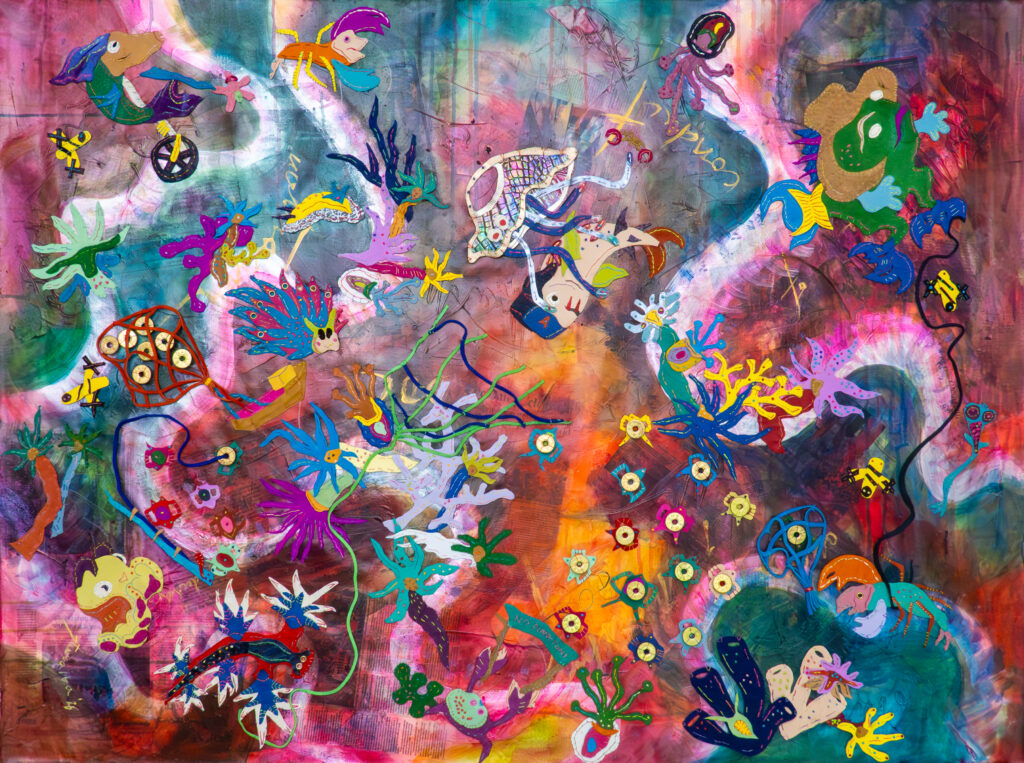 Drawing from research on contested waters, her underwater creatures mirror human political tensions. As Turalba writes: