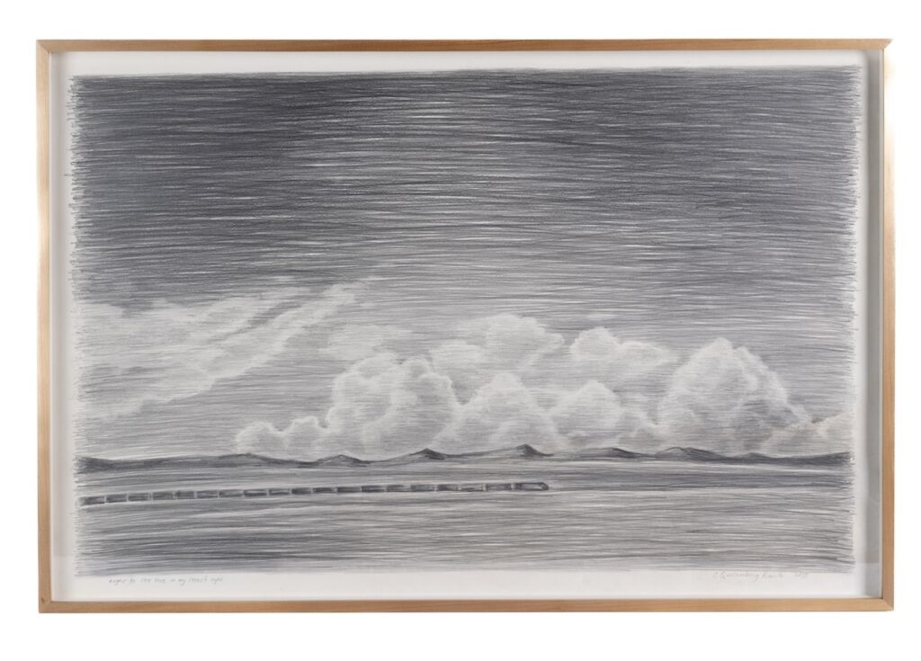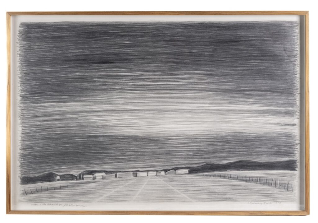 Ling often describes her art as a form of autobiography, capturing her experiences rather than showing them directly. Her series “Roadtrip” includes drawings from a two-month trip across the U.S. with her ex-girlfriend. Instead of well-known places, the drawings highlight brief moments they encountered. “They capture moments on the road versus landmark scenes,” she explains. “These scenes could be anywhere, not necessarily in the U.S.”