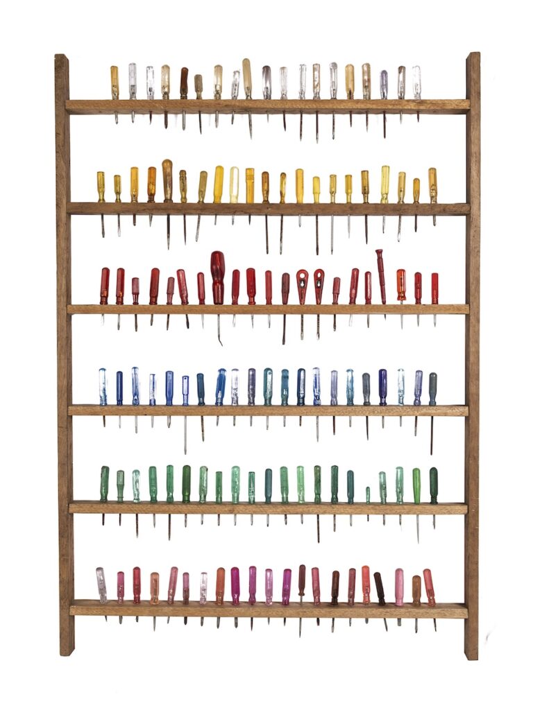 Each component in Quisumbing’s assemblage is treated with unhurried patience. Time is spent sanding, distressing, cleaning, or revitalizing materials—not to erase their past, but to honor it. This slow, almost devotional process mirrors how she speaks about the objects themselves.