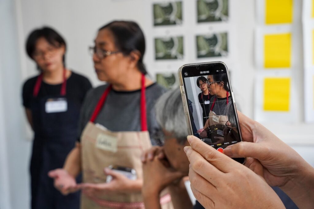 The workshop moved fast. The vibe was learners one and all. It was fascinating watching how the Materica Gesso paper, the final print’s home, was meant to “fall” onto the inked woodblock, gently. You set it up with taped guides, a non-slip mat, and careful alignment, then let the paper drop onto the block. After that, you rub it down firmly with a kitchen wooden spatula, peel it off slowly, and hang it to dry.