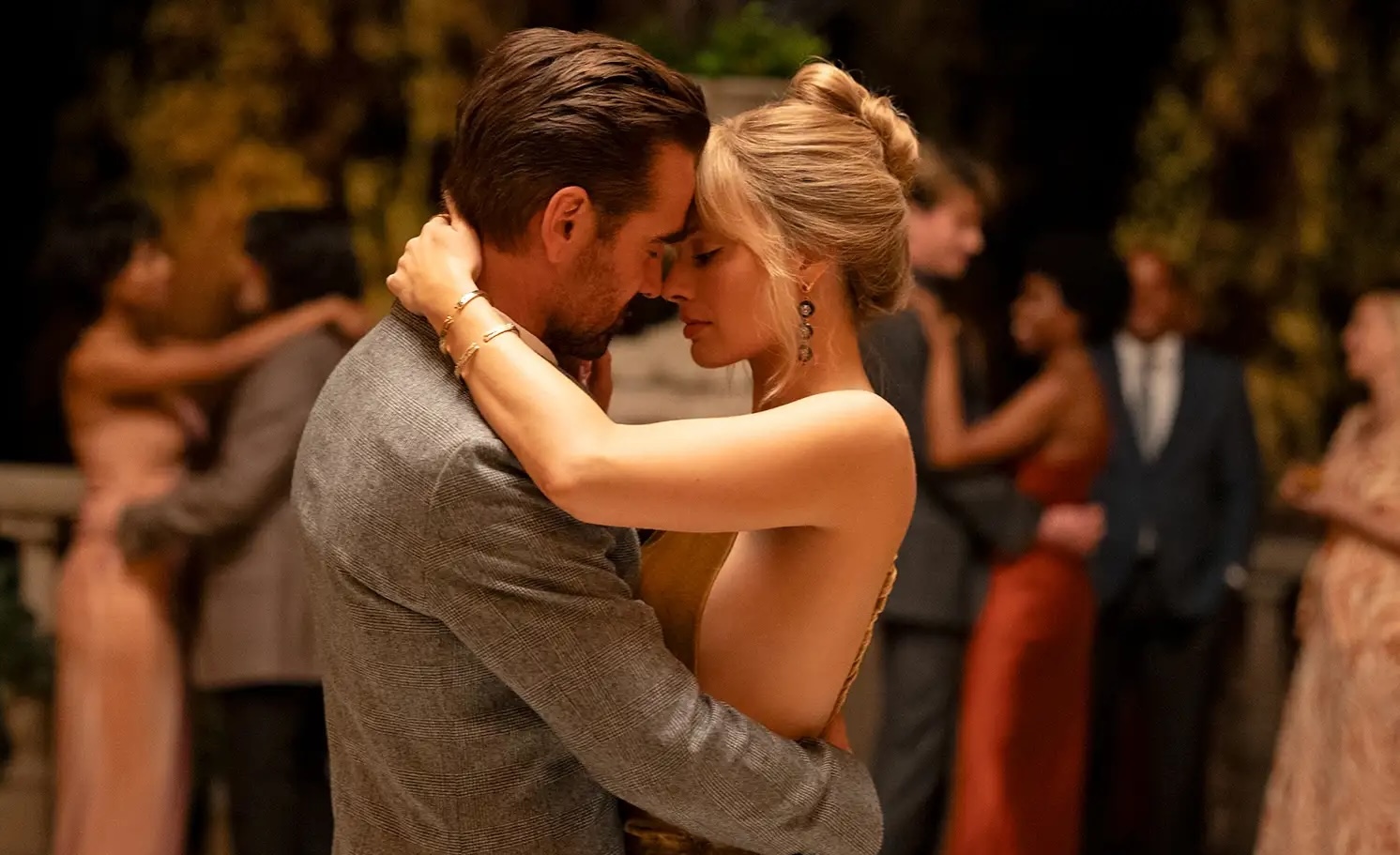 Farrell, at 49, proves he’s still got it as a leading man and fares better; perhaps because he knows how to undercut whimsy with quiet, raw emotion. A scene at the wedding where he watches Sarah dance with another man contains more truth in one glance than half the dialogue. His eyes radiate longing and helplessness—a hungry stray staring into a butcher shop window. It’s funny, sad, and human, all without a single word.