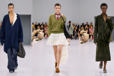 The runway show features artworks by Lynda Benglis, who created an installation of monumental bronze sculptures.