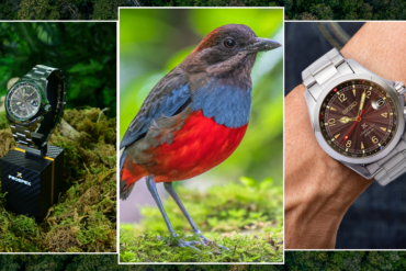 This limited-edition watch, inspired by the elusive Whiskered Pitta, merges craftsmanship with conservation by supporting efforts to protect the Philippine rainforest.