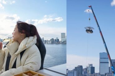 The novel restaurant has come to Japan to offer thrill-seeking foodies the expreience of dining while "floating" 130 feet in the air.