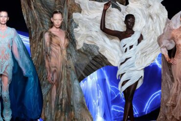 At the heart of the collection is a literal living dress inhabited by 125 million bioluminescent algae.
