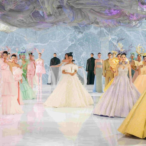 Leyva played with bridal whites and pastels in his recent show at Conrad Manila.