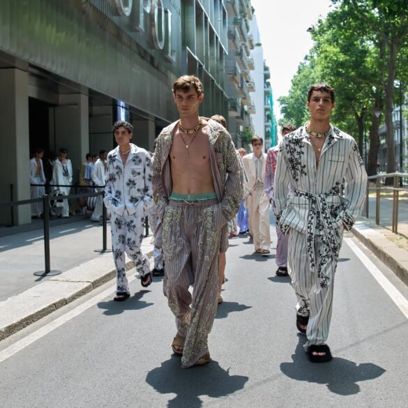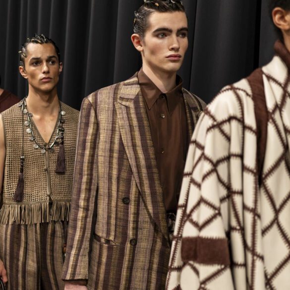 Emporio Armani’s SS26 menswear show blends North African influences, soft tailoring, and earthy tones in a relaxed collection titled Origins.