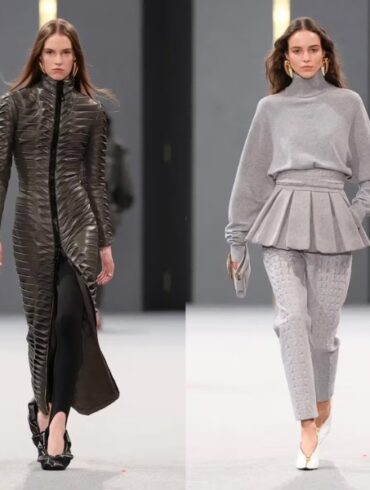 Shown at Paris Fashion Week, the Fall/Winter 2025 lineup featured structured tailoring, bold leather looks, and fluid gowns.