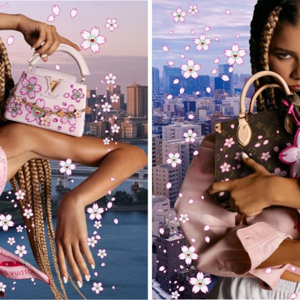 The charming collection uses an aesthetic pink palette and Murakami’s whimsical florals to perk up 40 of the house’s creations.