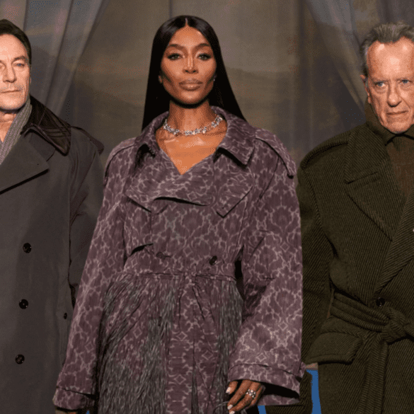 Burberry’s Fall 2025 collection at Tate Britain embraced heritage outerwear, featuring rich textures, British actors on the runway, and a nod to aristocratic interiors.