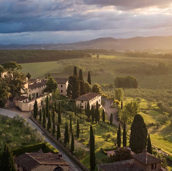 COMO Castello del Nero’s 12th-century castle stands on top of a hill, and houses suites that feature original fireplaces, and walls covered with centuries-old murals.