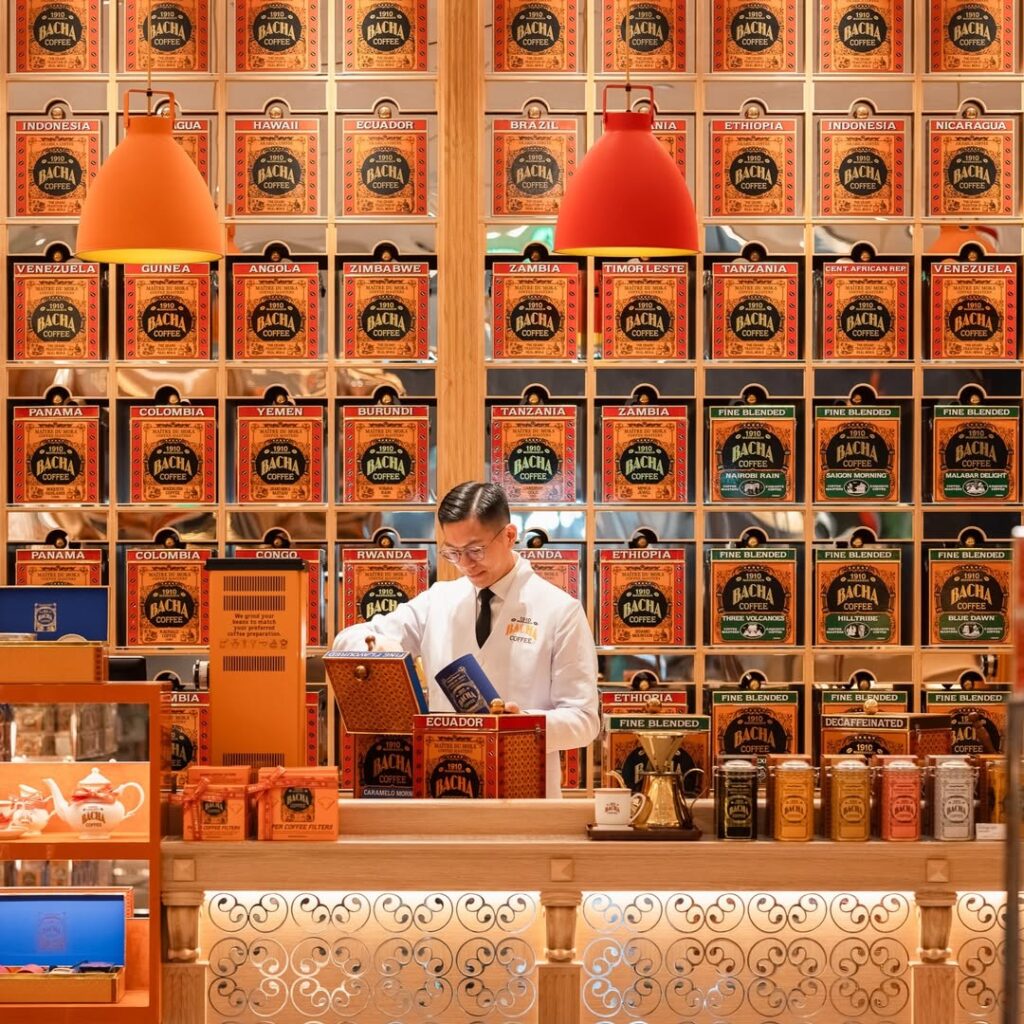Bacha Coffee is known for its wide range of 100 percent Arabica varieties, its traditional pour-over service, and its strong retail and gifting presence across Asia.