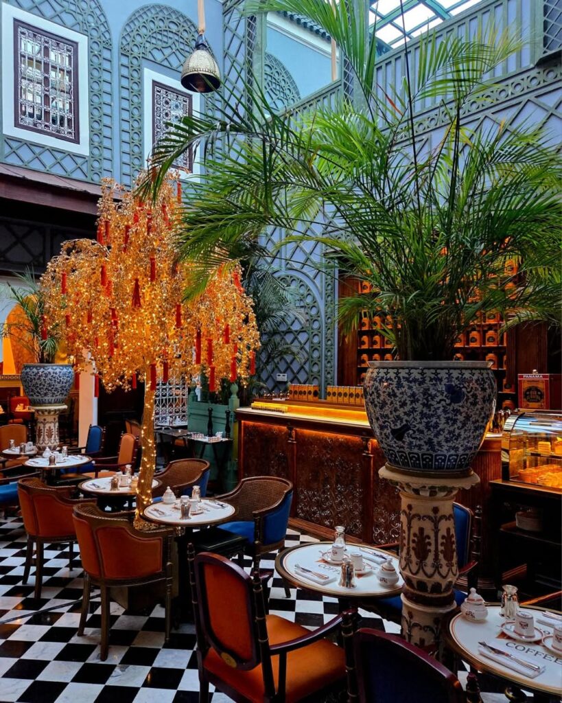 Bacha Coffee was founded in 1910 inside Dar el Bacha, a historic palace in Marrakech. The coffee room was known as a gathering place for cultural and political figures during the early 20th century.