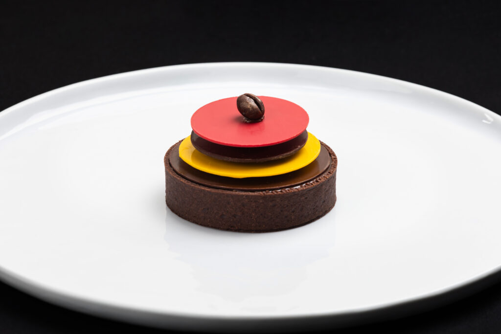 The Barako-Dalandan Torte sits on a hazelnut crust with Barako coffee ganache and toffee-dalandan caramel. The roasted coffee and citrus meet in balance, still recognizably Filipino, but more refined.