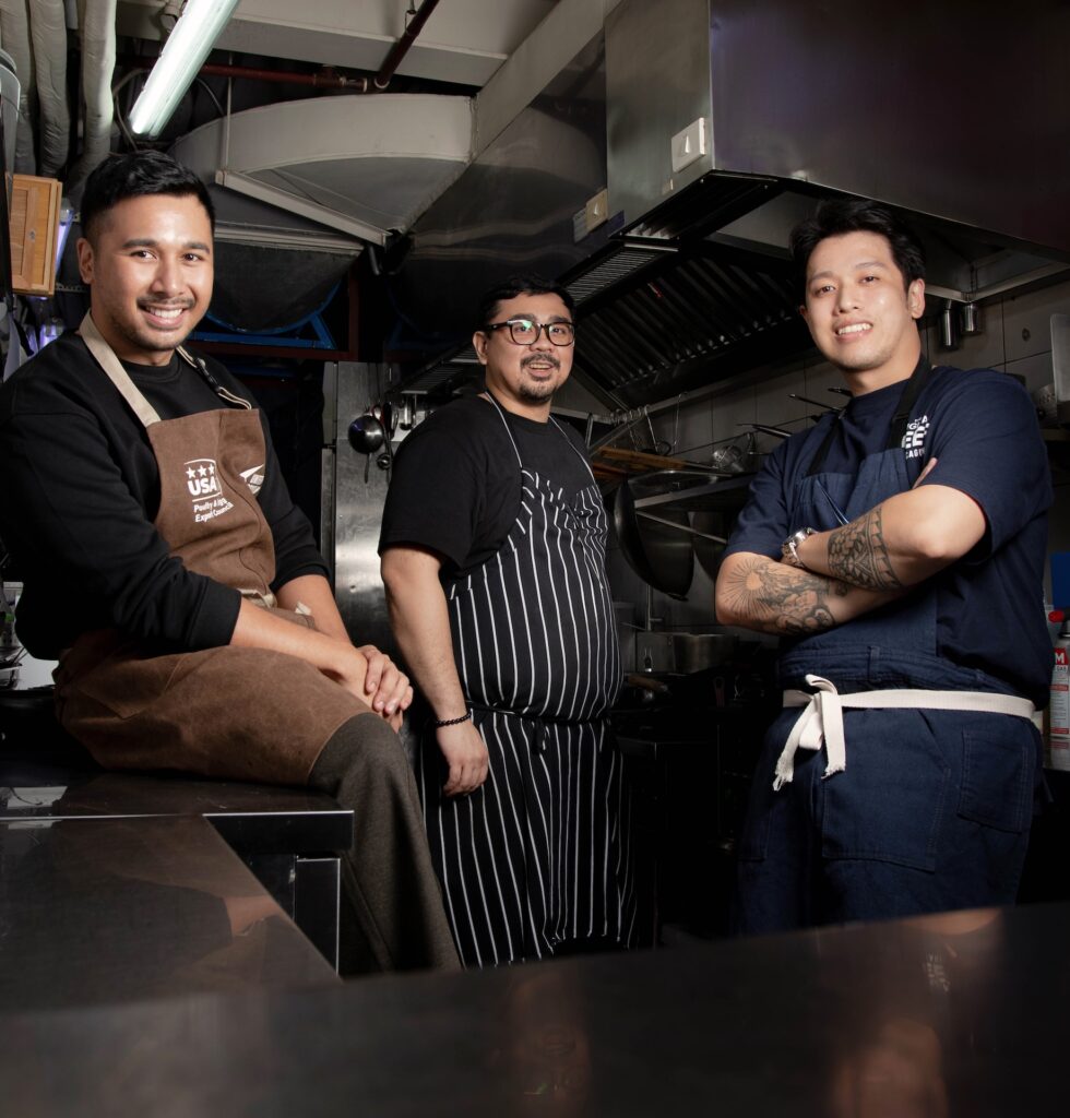 Handcrafted dumpling mastery meets the irreverent spirit of Underbelly’s kitchen: Underbelly chefs Noel Mauricio (left) and Jackson Chua (right) and Tupi Dumpling hef Potz Isaac