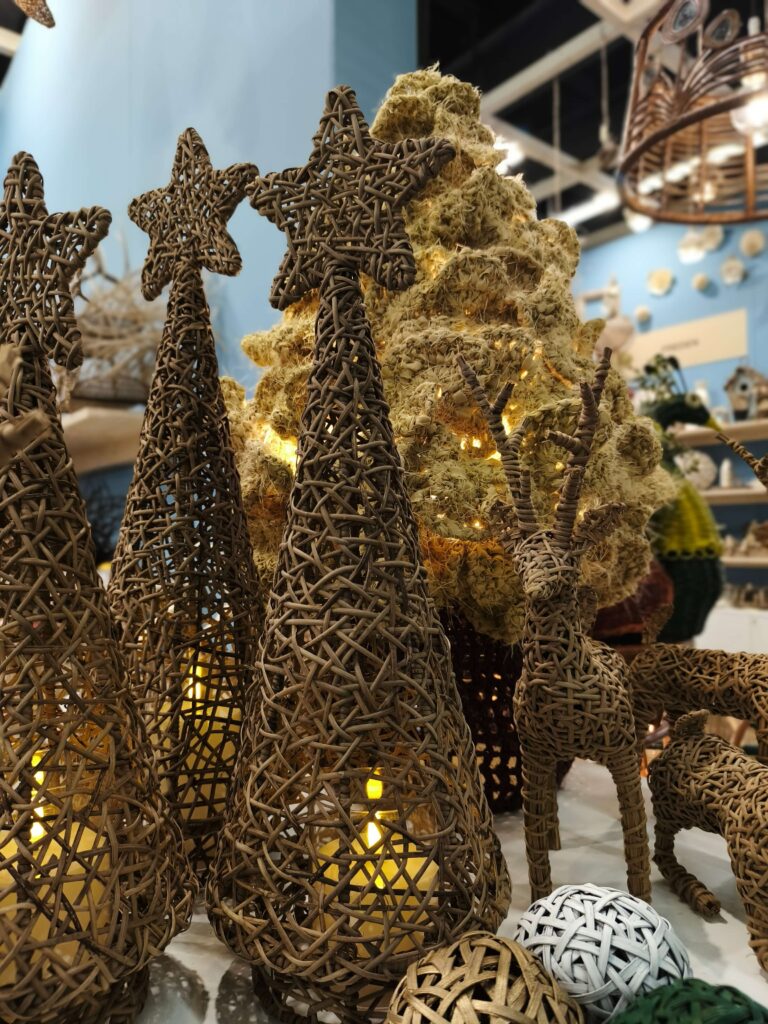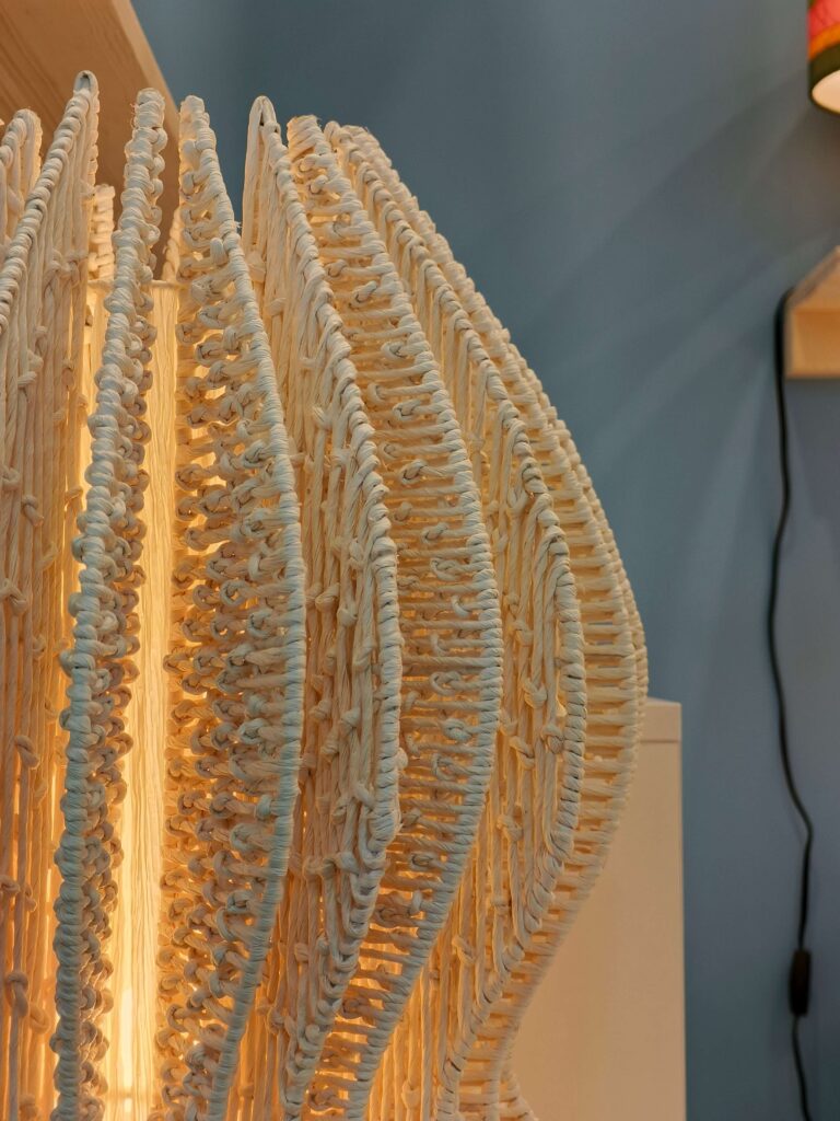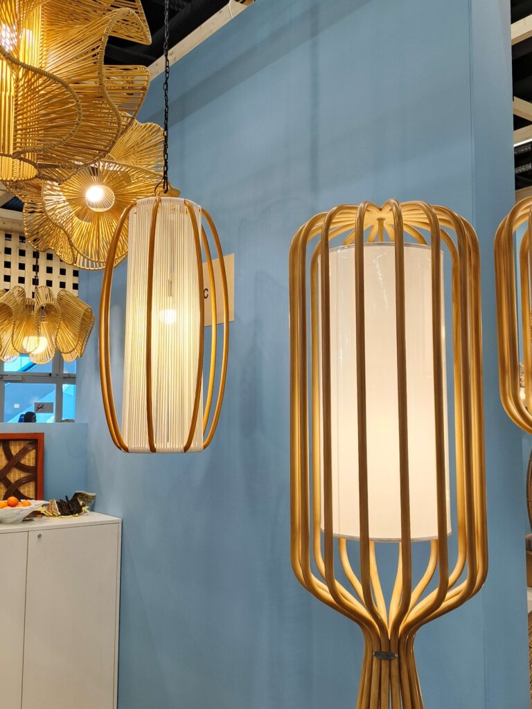 Like any visitor stepping into the hall, I catch my breath when I see the products for the first time: rattan woven in countless interpretations, wood bent to a designer’s will, rope freed and unbound, fabric gathered into sculptural light and shadow.