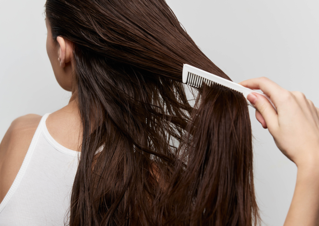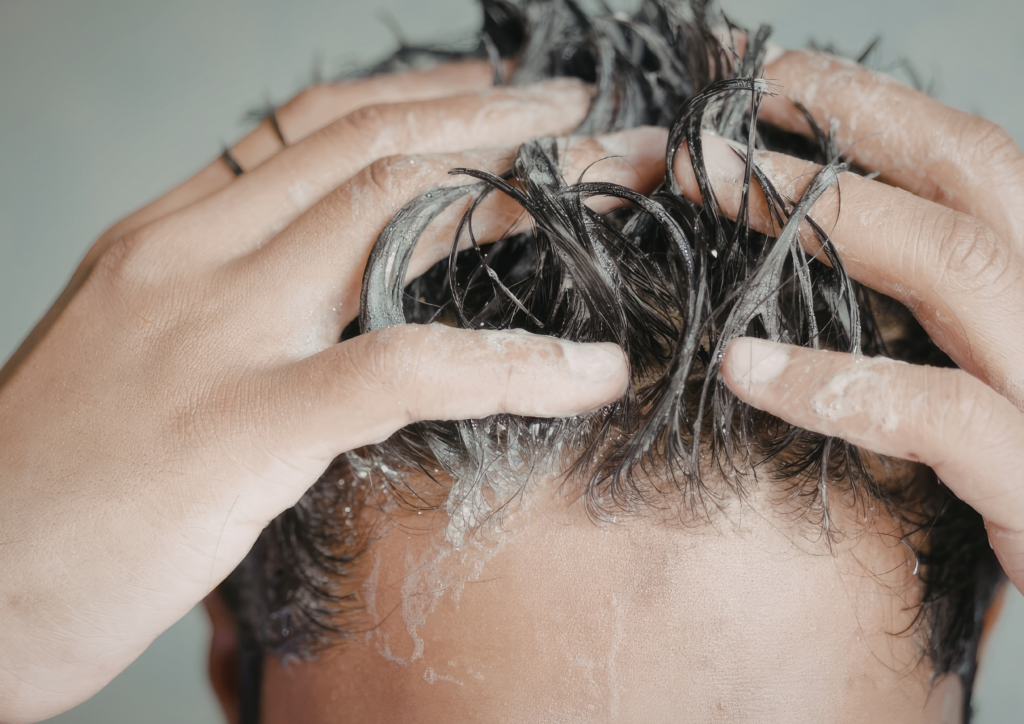 After washing, apply scalp tonic right away when the hair is still slightly damp. Think of it like skincare for the scalp: cleanse first, then apply treatment.