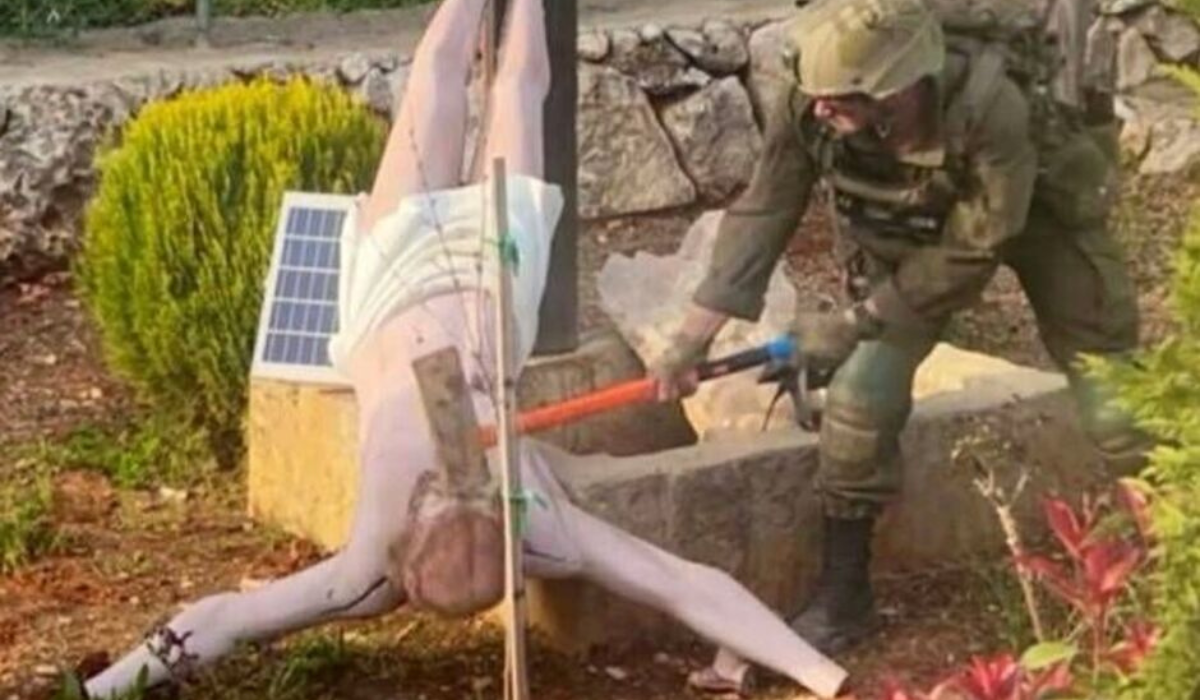 The incident reportedly took place in southern Lebanon, where Israeli forces have been operating amid ongoing cross-border tensions. In the video, a uniformed soldier is seen using what appears to be a sledgehammer to damage a statue depicting Jesus Christ—an image that holds deep religious significance, particularly for Christian communities in Lebanon and across the region.