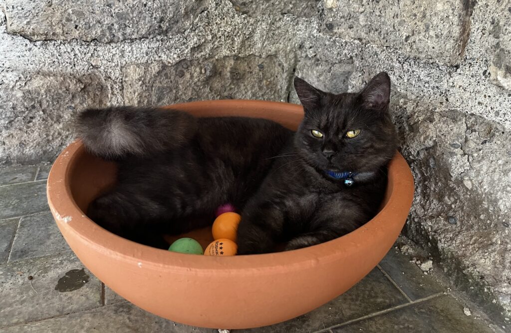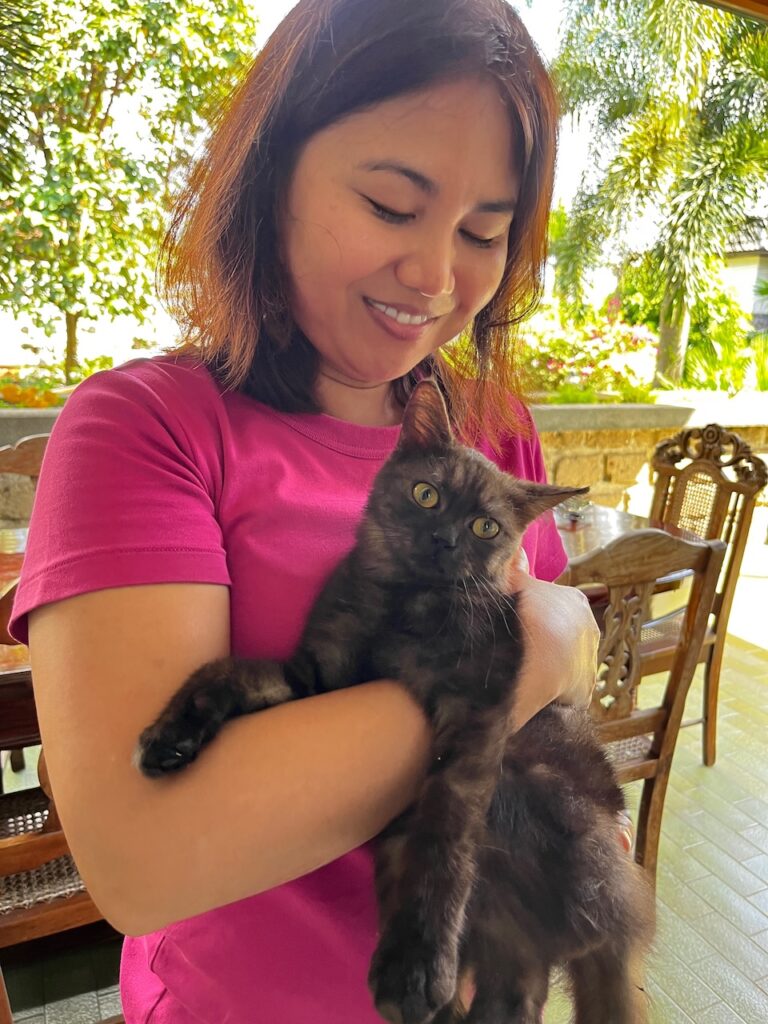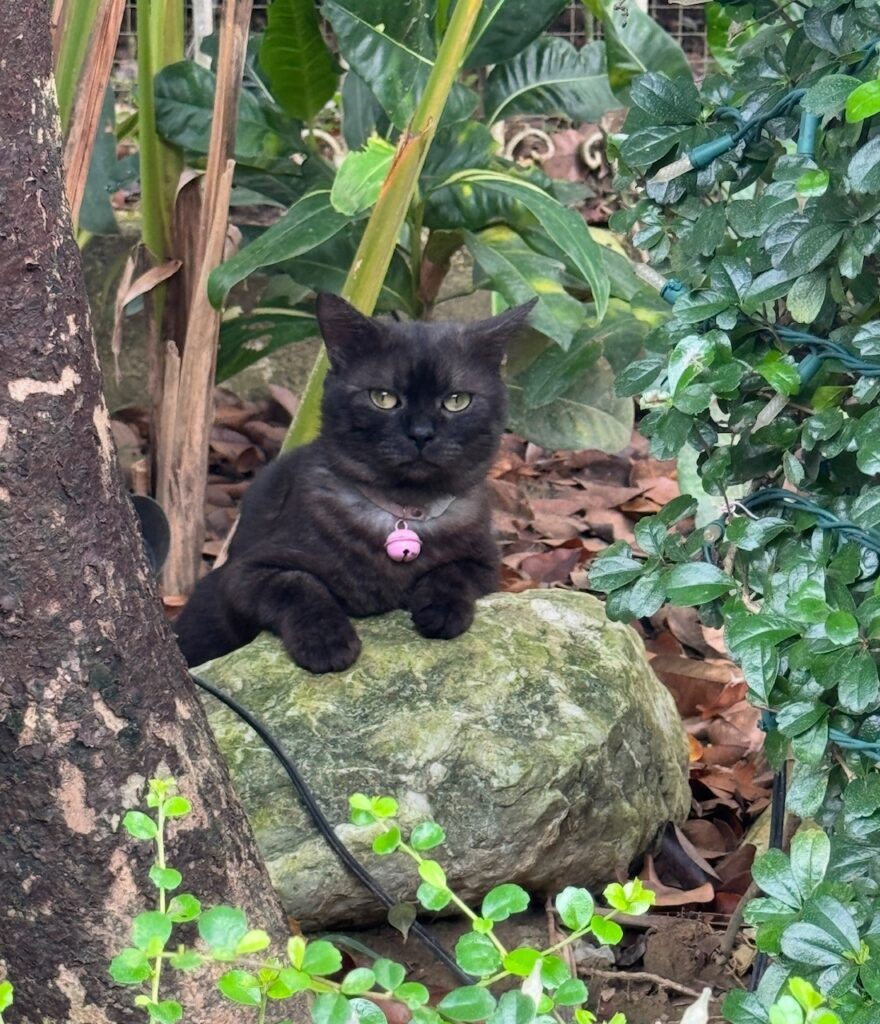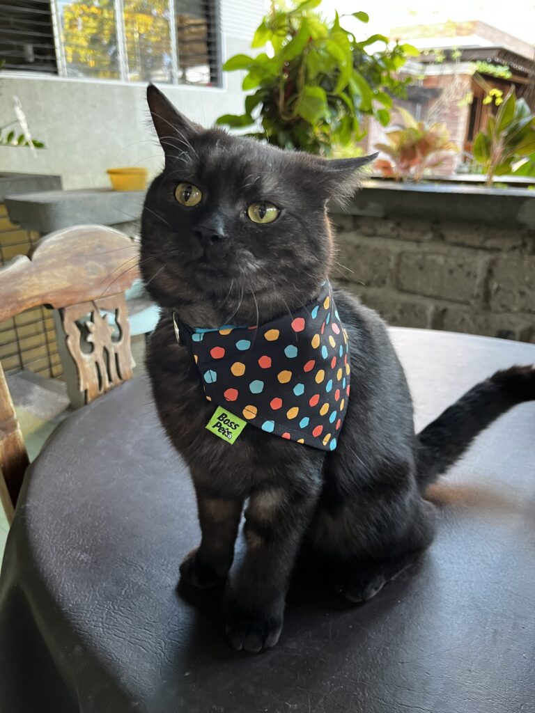 Noche was my first real pet—not the family’s but mine. A black smoke kitten I got in 2022, skinny and wide-eyed, looking like a bad day personified. I spoon-fed him, taught him to respond to his name, to sit on command, and to enter his pet condo at exactly 6 pm. He played fetch with leaves, walked with me around the garden while he meowed as if narrating our little adventure, talked to flowers, teased the dog, and kneaded my tummy like dough.