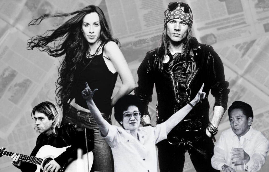From grunge to democracy: Kurt Cobain, Alanis Morissette, and Guns ‘N’ Roses’ Axl Rose shaped the sound of the 1990s and ’80s;  President Cory Aquino reshaped the nation by ending the dictatorship of Ferdinand Marcos Sr.
