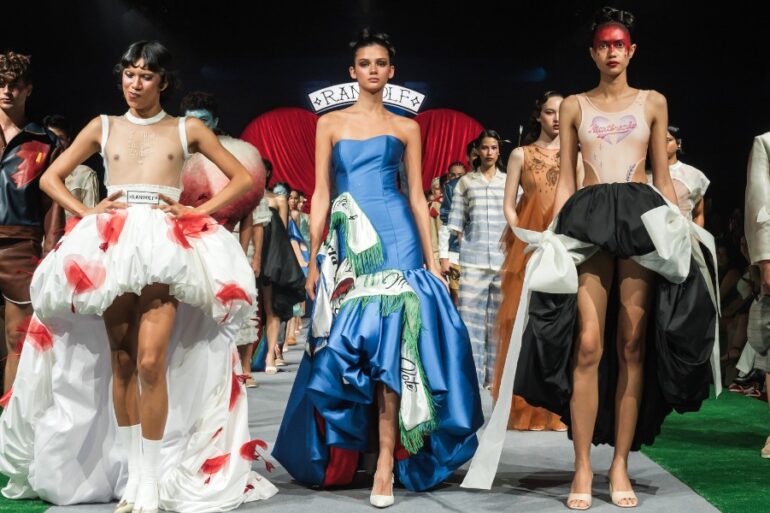 Ecydsis, Villaseñor’s debut collection for Spring/Summer 2023, opened with a slew of suede, rich python leather, layered denim looks, and head-to-toe metallic ensembles, finished with breezy creams and seductive ‘90s Tom Ford Gucci-esque goddess dresses that sparkled with sequins and signature gold buckles.