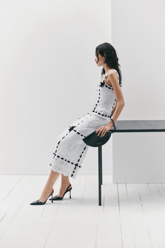 The color palette was likewise curated to transcend seasons. Fresh spring greens add more life to laces, while delicate pinks and rich crimsons bring warmth to knits and evening silhouettes. Meanwhile, muted blues and calm midnight tones soften tweeds and jerseys, while cherry brown infuse the delicate assortment with natural depth.