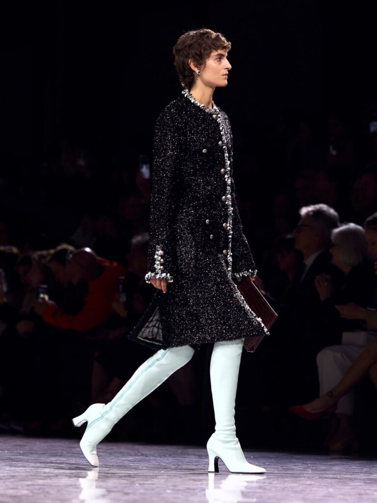 Blazy also revisited Chanel’s key pieces in a more relaxed way. The jacket appeared in softer constructions and updated proportions. Color was used carefully, adding variation without overpowering the collection. Nothing felt forced or overly styled. The changes were controlled, which made the overall direction clearer.