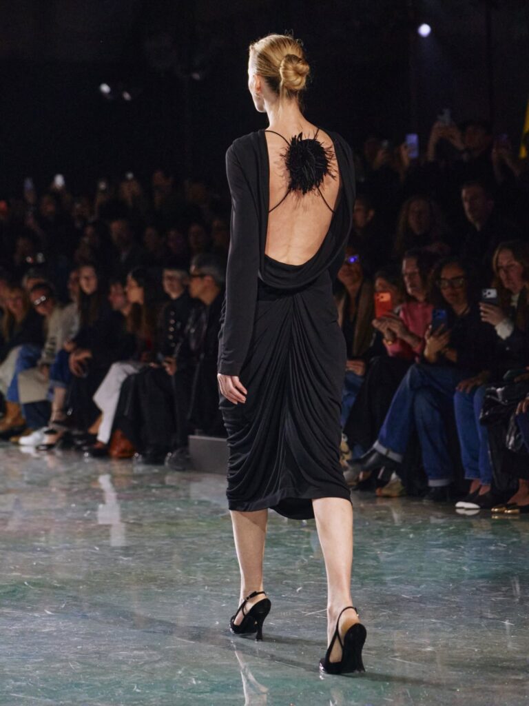 The show closed with a black dress, one of Chanel’s most recognizable ideas. It was minimal from the front, with a low back and a single camellia detail.