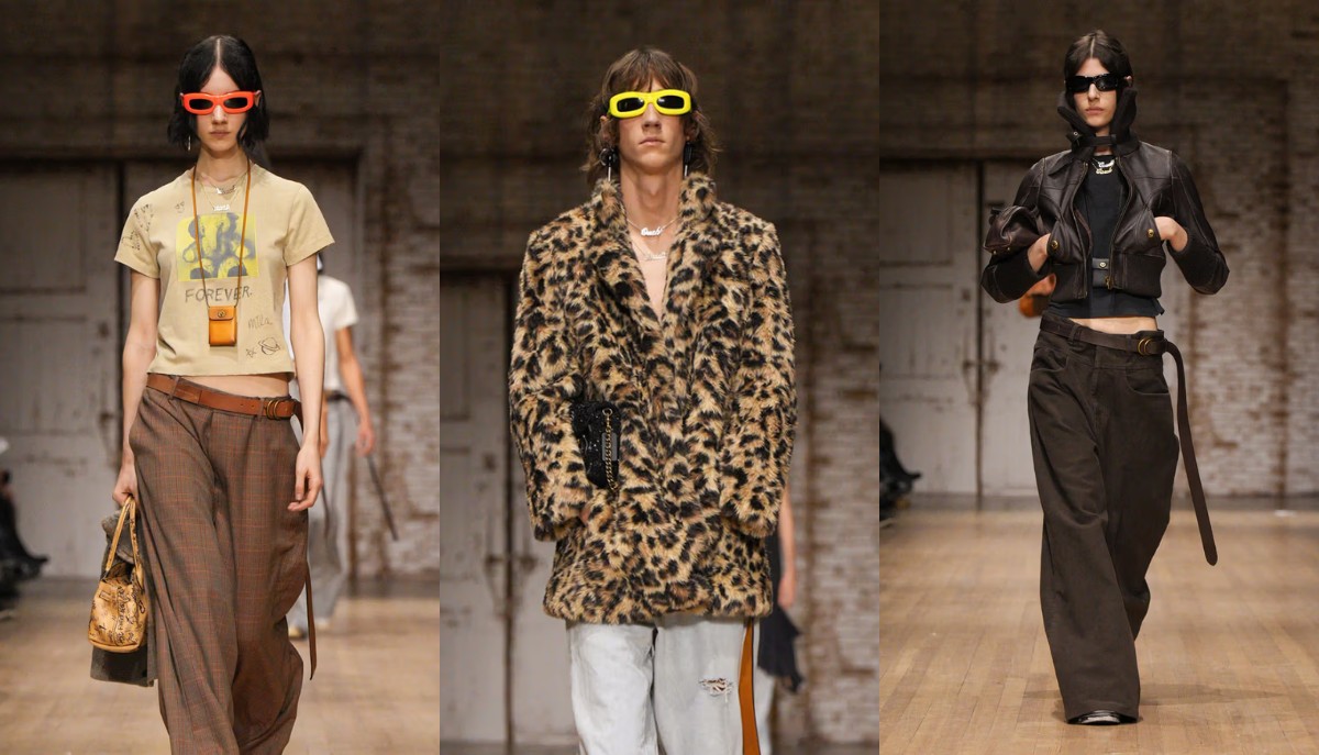 Each of these models looked as if they had just been plucked off the streets of Manhattan, wearing clothes inspired by Vevers’ favorite film, Kids. Cropped distressed leather jackets, washed denim, small graphic tees, and oversized cheetah coats, and more translated the 1995 film that follows a group of rogue teenagers traveling around New York, doing all the crazy things adolescents do.