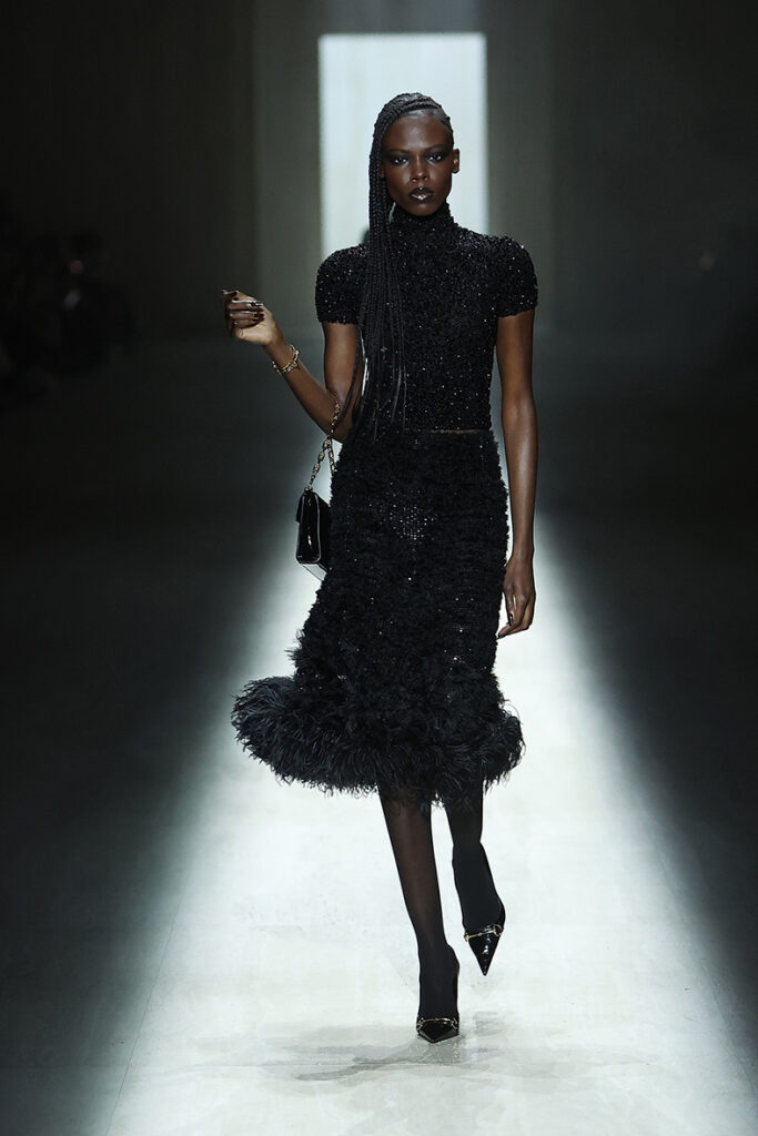 eathers and fur added texture and depth to the collection, as seen in trimmed bombers and plush outerwear. Eveningwear took on subtly heightened drama. Meanwhile, the final menswear looks were showcased without shoes at all, extending the collection’s “back to basics” theme.