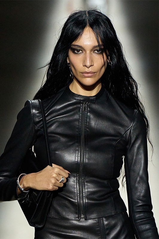 The collection projected sexiness, fearlessness, and a new wave of distinctly hyper-modern aesthetic. It opened with a seamless white minidress in hosiery fabric, setting a sleek, refined, and flirtatiously glamorous tone for the 81 looks that followed. From that point on, silhouettes remained restrained and body-conscious. Jackets hugged the torso, while low-rise leather pants approached the look of leggings.