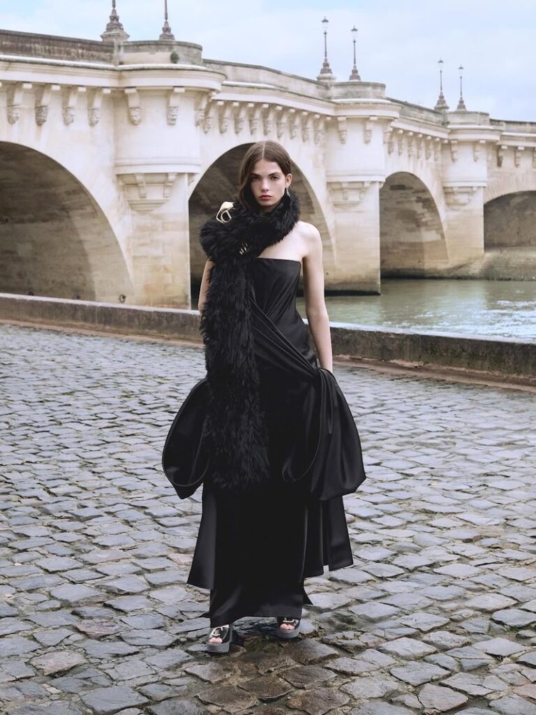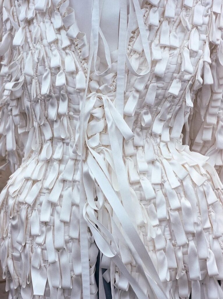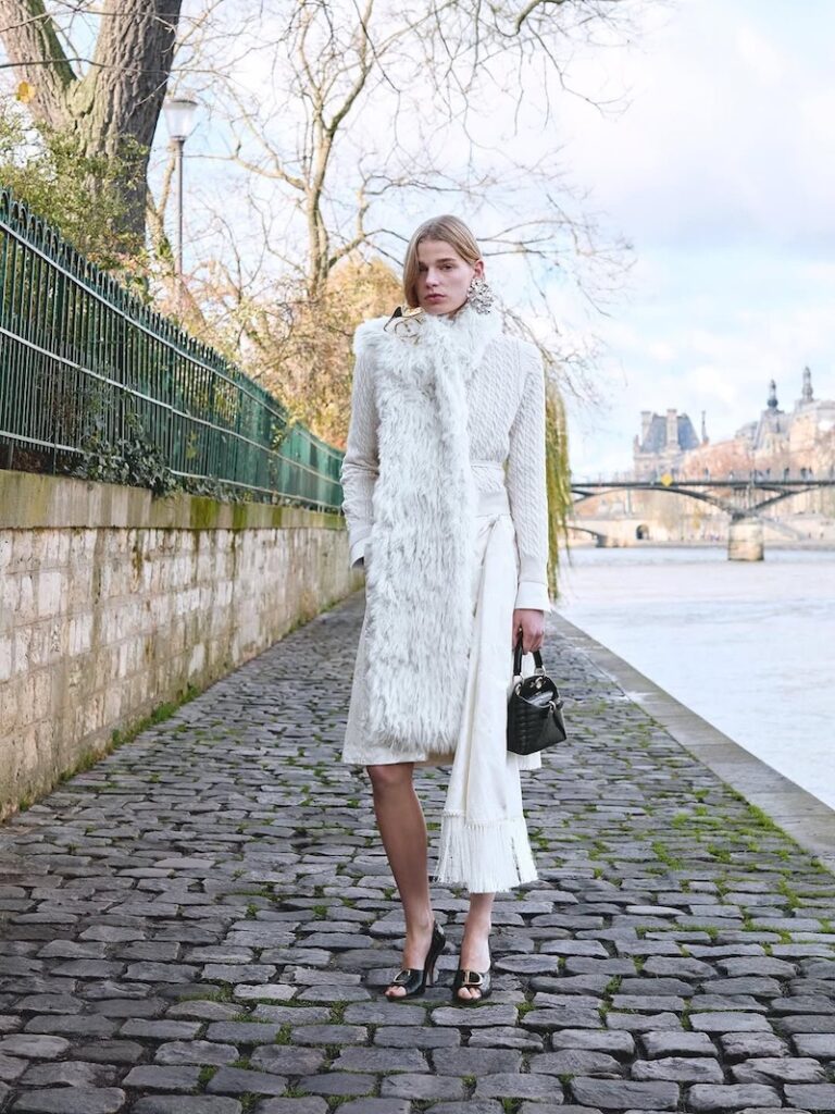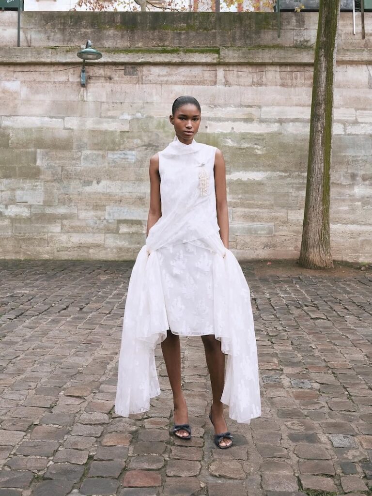 The collection, unveiled via the designer’s Instagram on Dec. 16, 2025, features looks that pay tribute to the house’s most iconic haute couture pieces with confidence and a sense of adventure. The Bar jacket is enlarged into a minimalist coat, with some shrunken, cropped, and threaded with loose bow-tied ribbons.