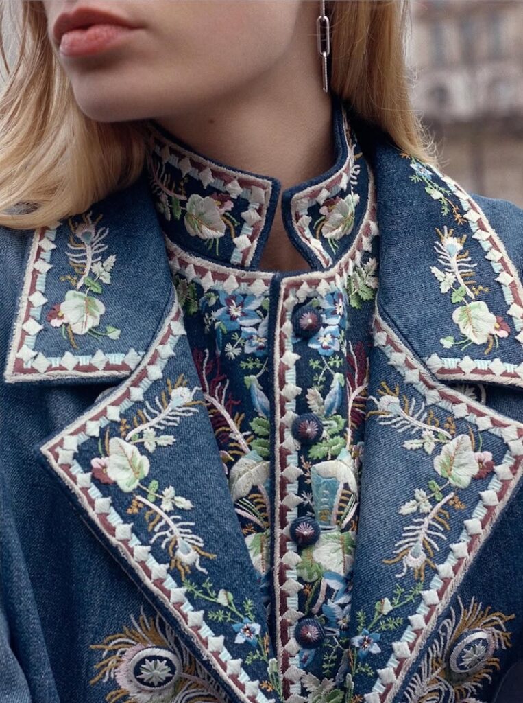 The accessories are also hard to ignore. Chunky faux-fur scarves, gold rings shaped like lady bugs, and iconic bags, like the Dior Kigali and Dior Crunchy, that were reinvented with gold crocodile leather and blue fabric showcased Anderson’s mastery of bringing art to the smallest details. Pumps, mules, and loafers with gold C and D buckles on each side added flair to the extraordinary collection.