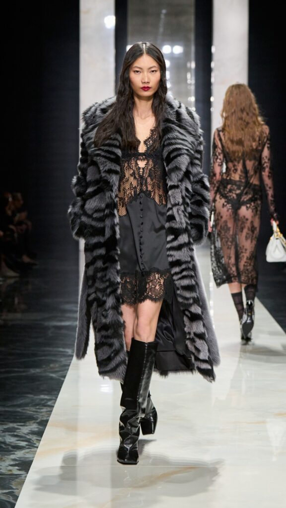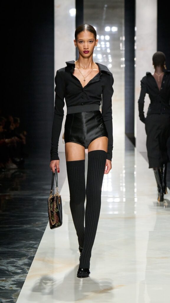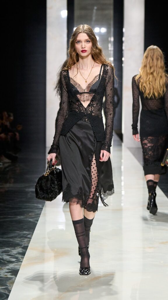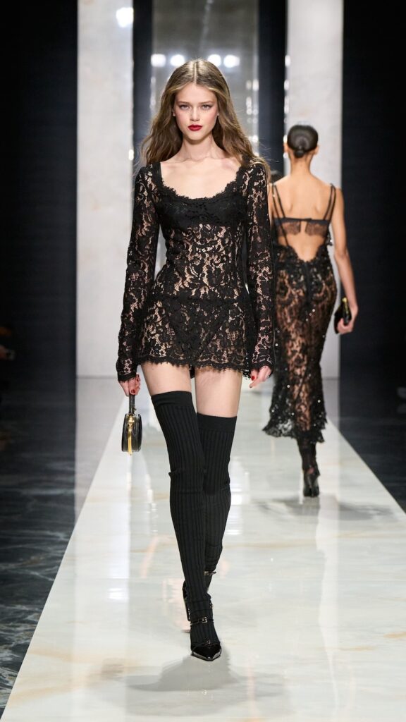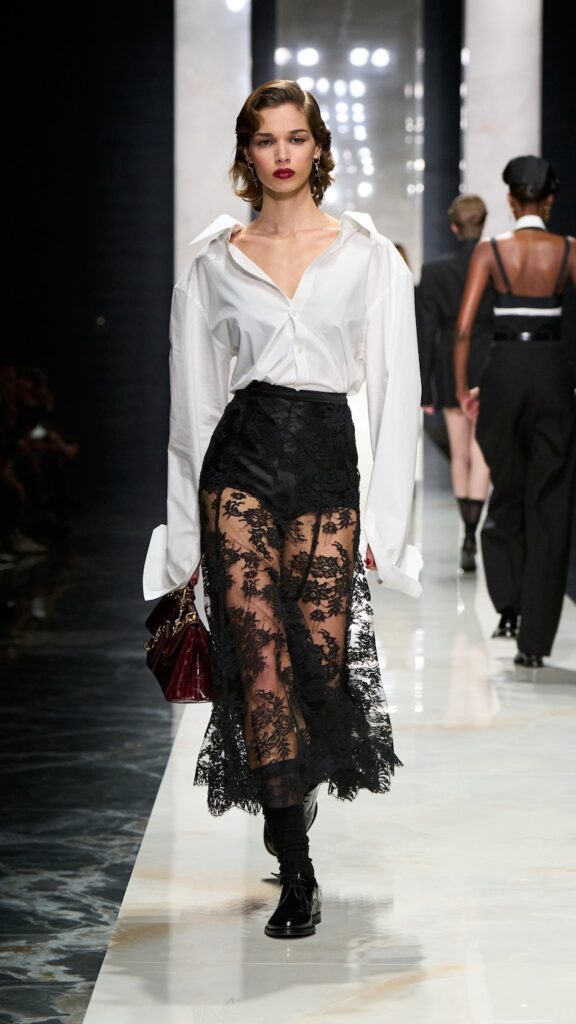 The show paid tribute to Dolce & Gabbana’s origins, reinterpreted through precise execution, a refined focus on the body, and laces—lots of them.