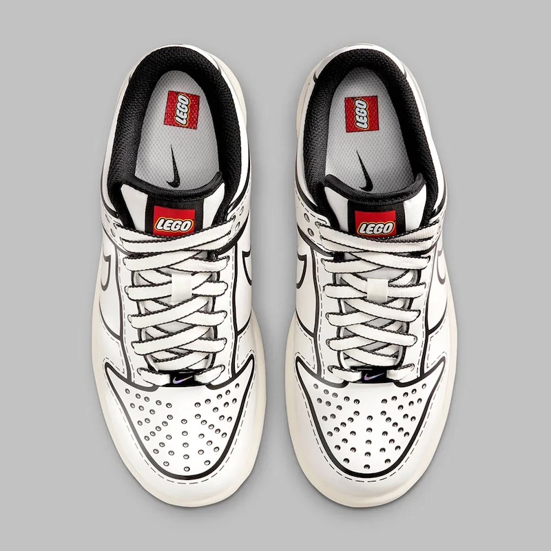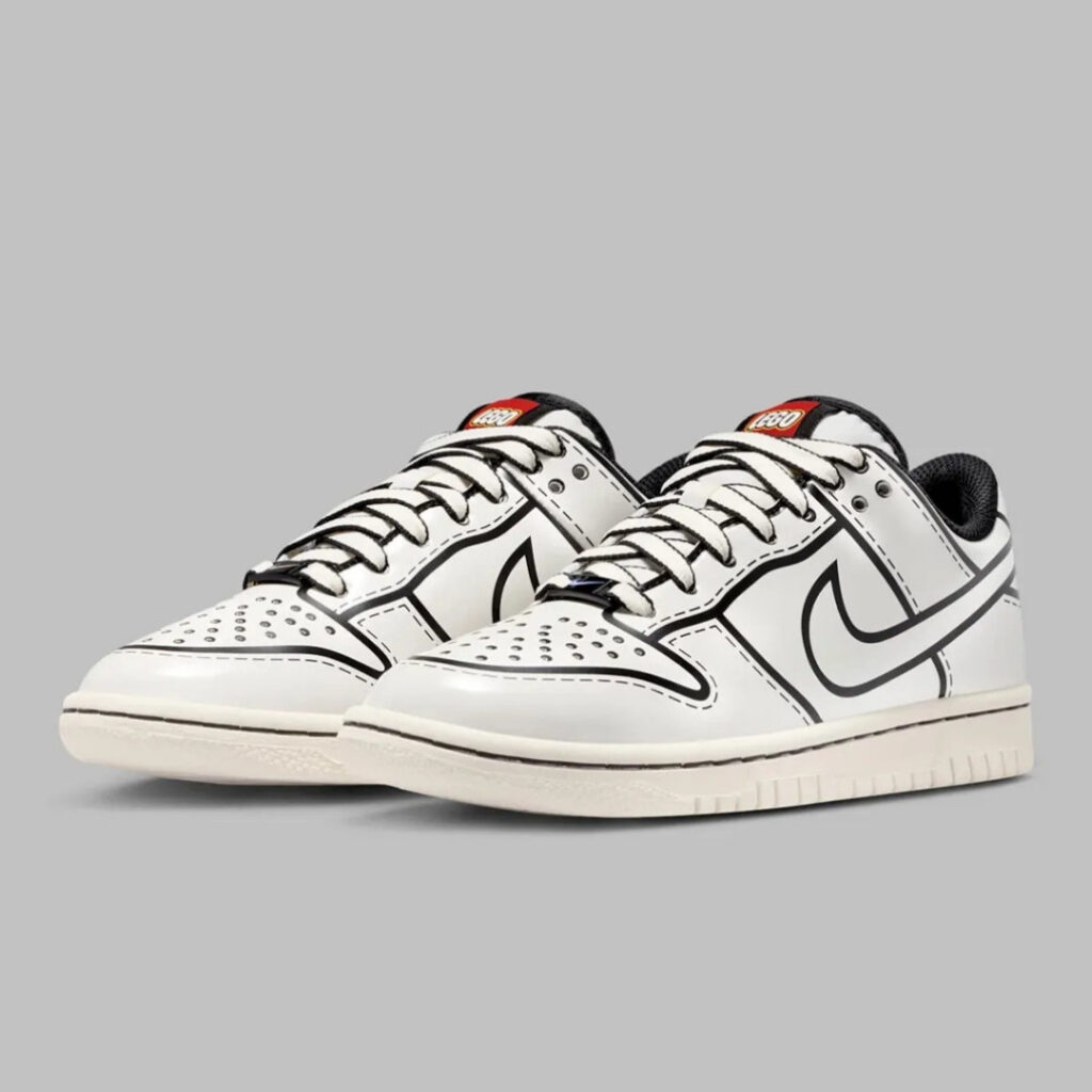 The other, equally covetable pair is the Lego x Nike Dunk Low kicks, which has an all-white patent leather uppers jazzed up with cartoon-like black borders. Both the Lego-fied Air Max DN and Dunk Low sneakers feature co-branding on the tongue, insole, and heel. They were launched alongside co-branded apparel and Lego sets designed to build iconic Nike models.