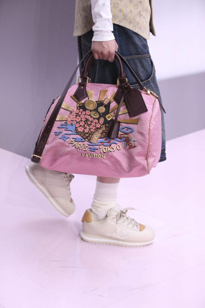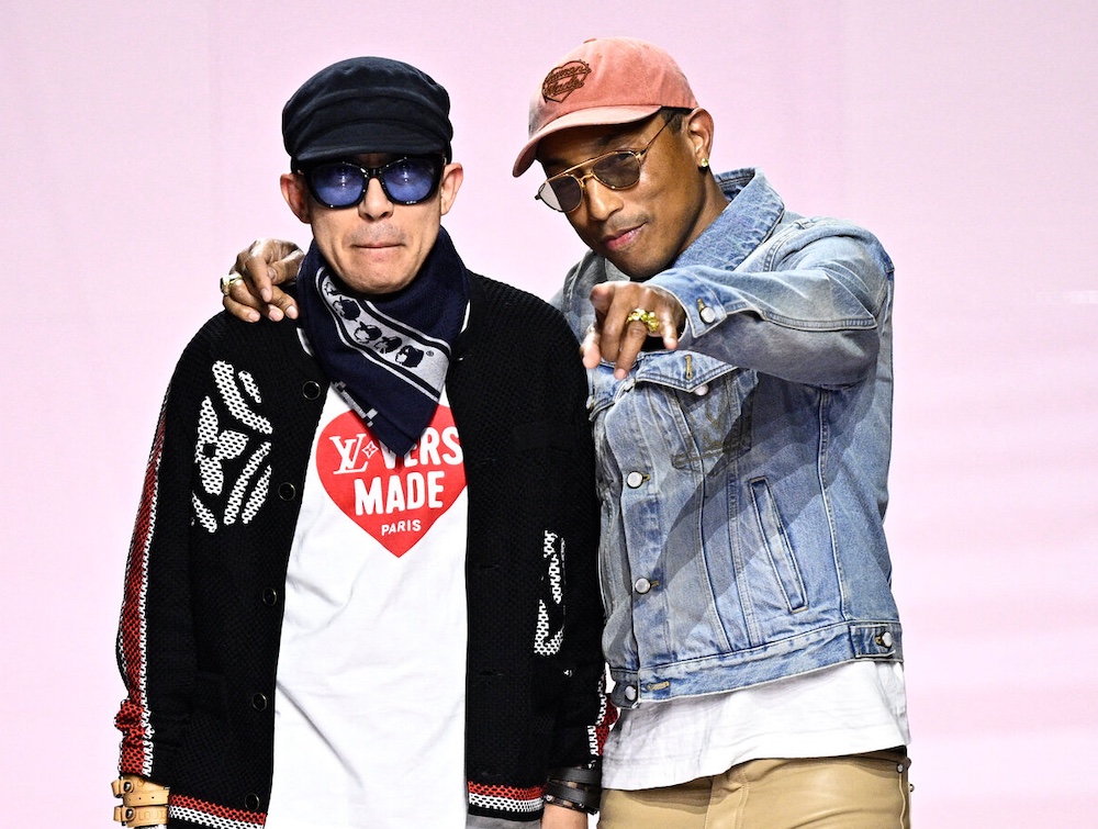 The Pharrell Williams & Nigo x Louis Vuitton collab told the story of the duo’s friendship of over 25 years, with elements featuring their likeness, “Phriendship” motifs, and nods to shared experiences. Mongrammed suits, varsity jackets, and unique accessories seamlessly blended Pharrell’s fusion of his signature street-cool aesthetic and LV’s luxe heritage with Nigo’s distinct Japanese-inspired elements like sashiko stitching, cherry blossom graphics, and traditional weaving techniques.