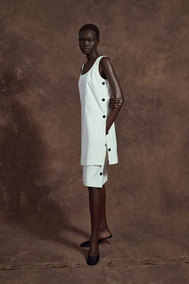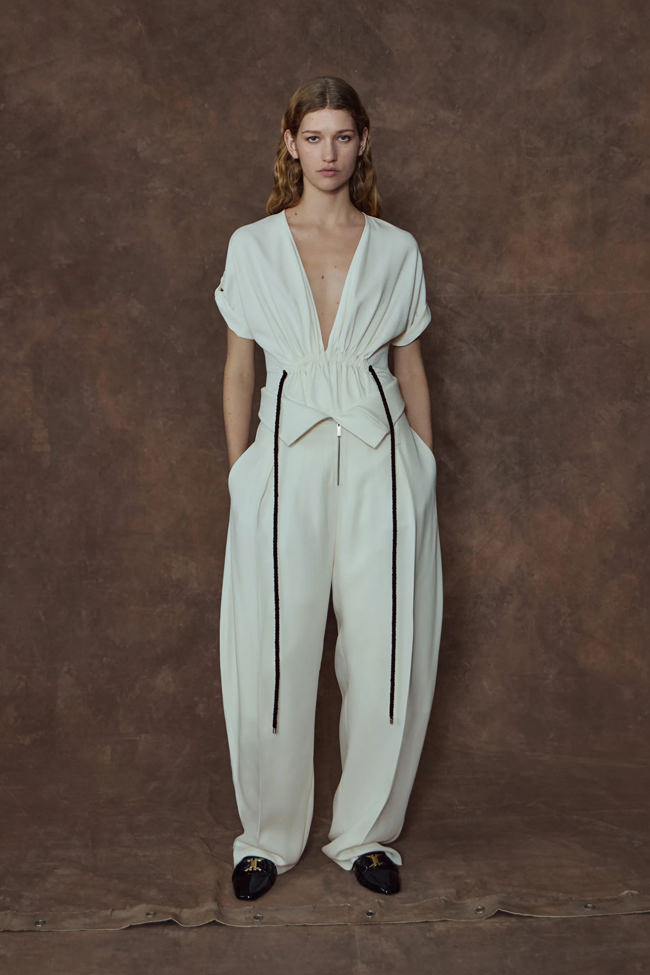 There were also easy-breezy knits, relaxed pleated pants, and low-slung pencil skirts, and softly gathered shapes that highlight the designer’s commitment both to classicism and comfort. Shirts were reinvented as dresses, with some appearing as an undersuit.