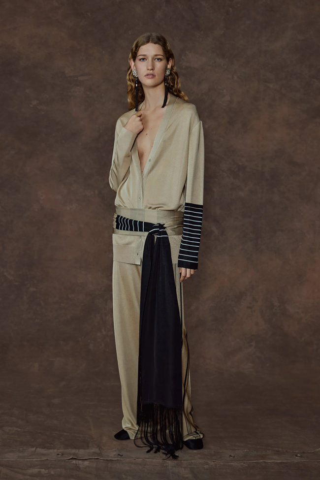 The ocean, a powerful symbol of connection among continents, cultures, and eras, adds flair to the collection that has subtle sailor codes running all throughout. Nautical stripes and maritime motifs surface across silk scarf dresses to patterned knitwear. These pieces carry the elongated silhouette of the 1920s, refreshed with the lightness and movement that define a luxurious, modern-day wardrobe.