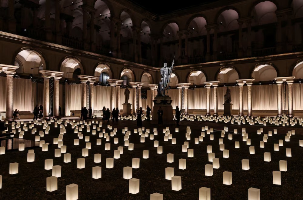 Giorgio Armani’s 50th and final show was held at Pinacoteca di Brera in Milan. Photo above by Claudia Greco/Reuters; photo below from Giorgio Armani/Instagram