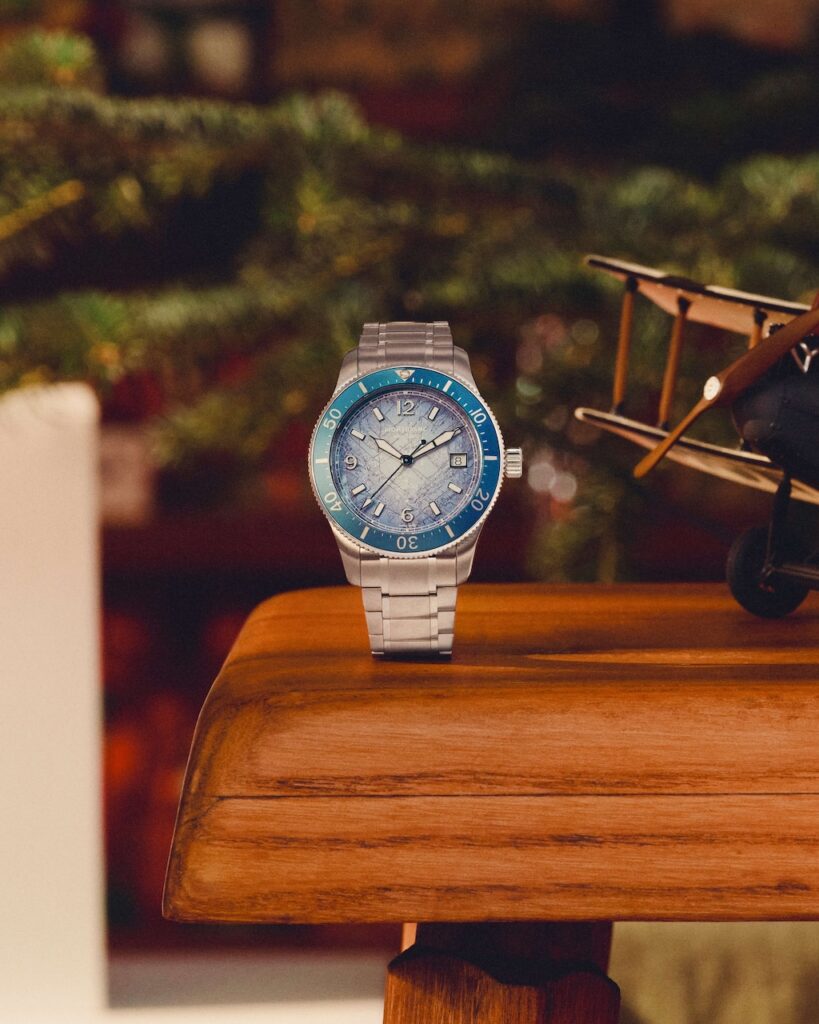 For those who seek beauty in the elements, the Montblanc Iced Sea Automatic Date 0 Oxygen stands out. Its light blue dial is textured with the gratté-boisé technique, capturing the depth and clarity of glacial ice from the Mer de Glace.