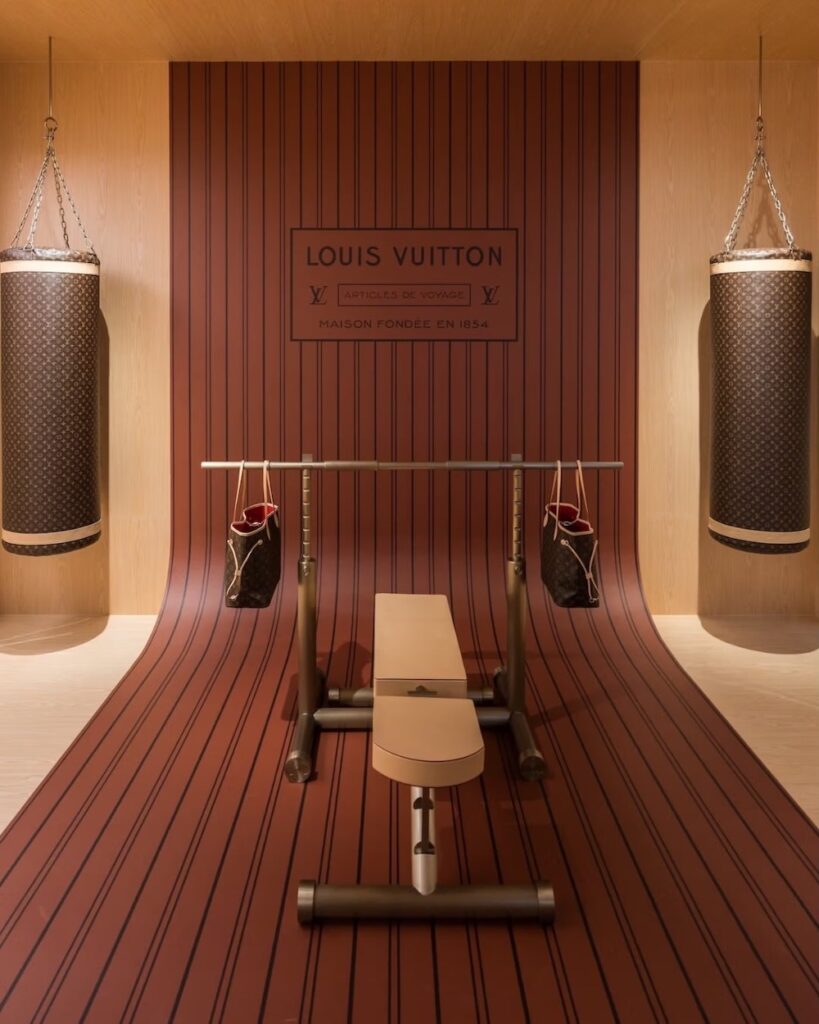 Next up is the “Neverfull Gym” where you’ll find an immersive showcase of the spacious and versatile tote that debuted in 2007. The room also has a mirrored weight track where you can take fun selfies with.