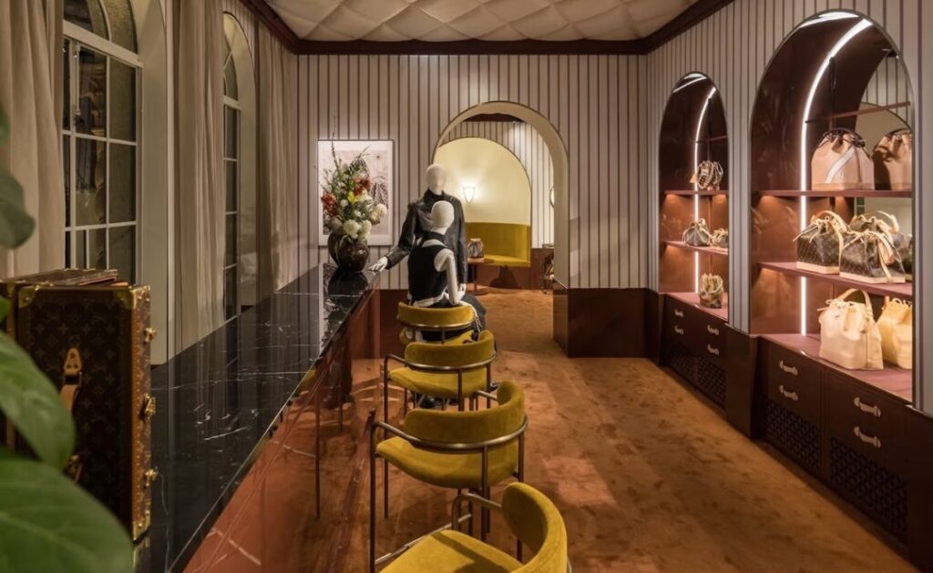 Just like a real high-end hotel, both of the pop-ups in Shanghai and NYC come complete with a reception area, rooms, and amenities that highlight the brand’s classic handbags. Every detail reflects the house’s travel-inspired DNA.