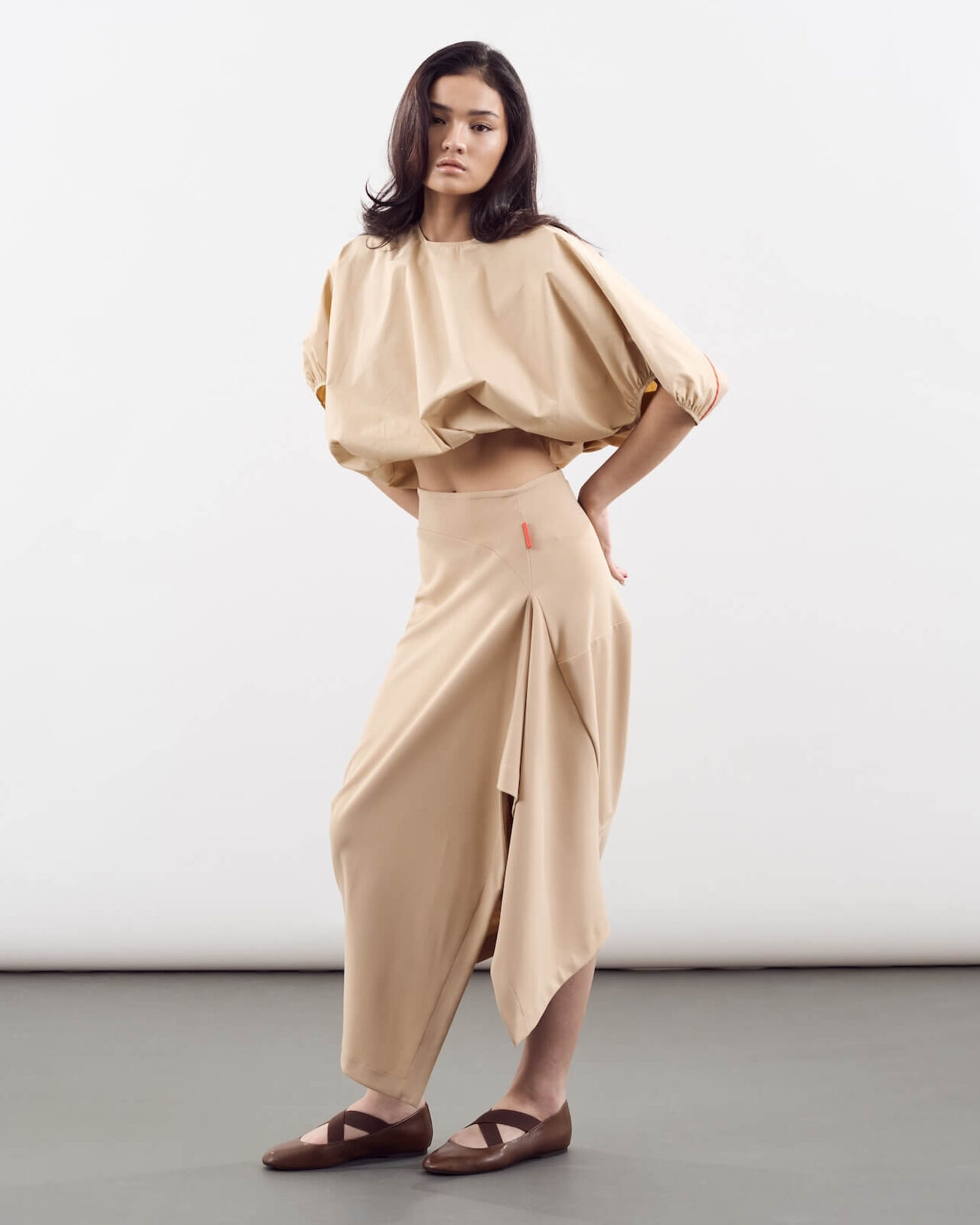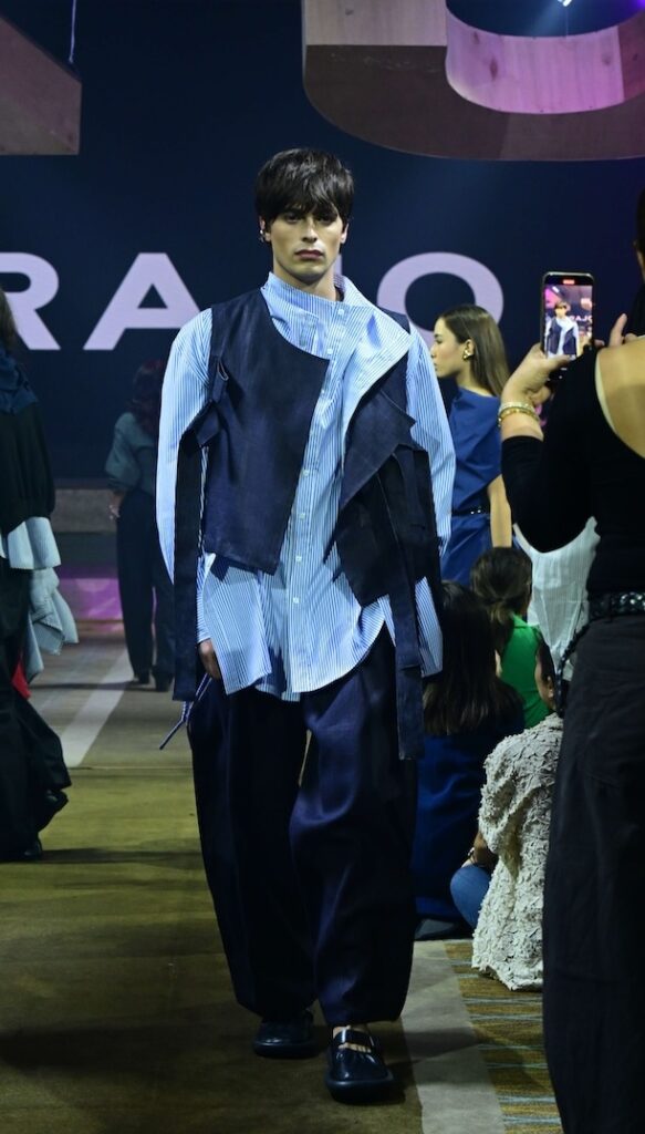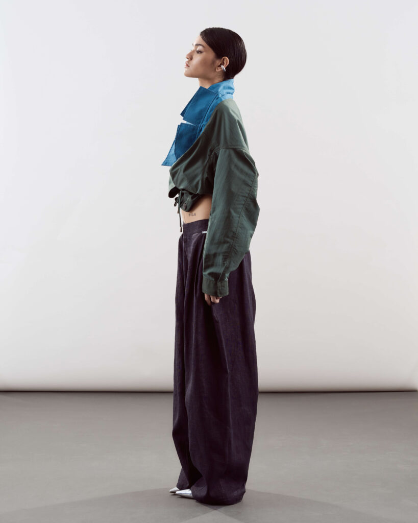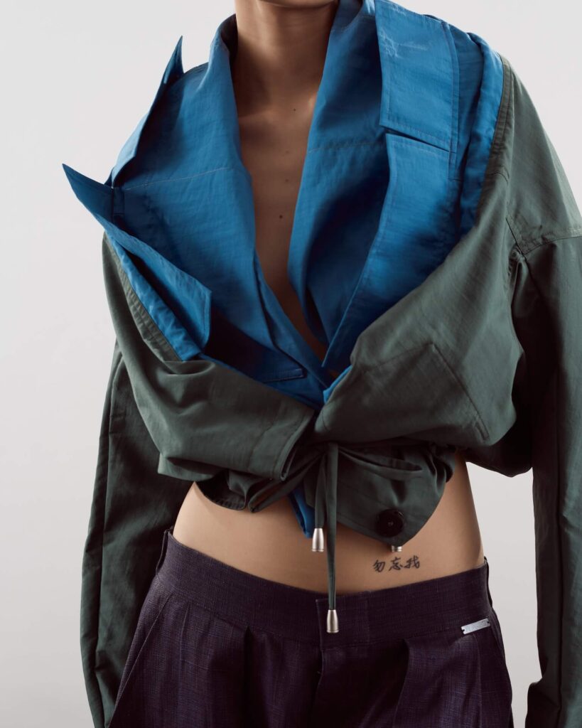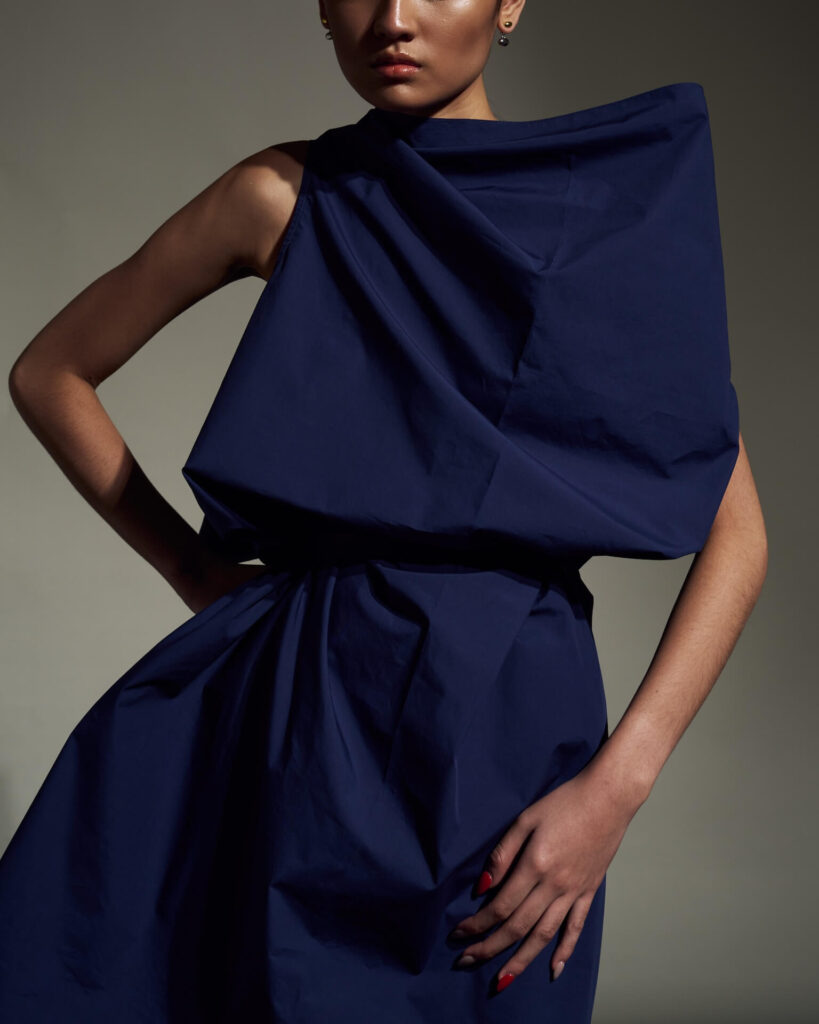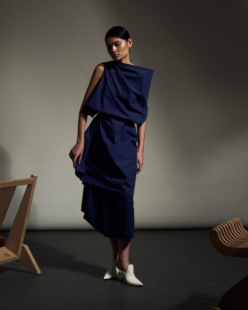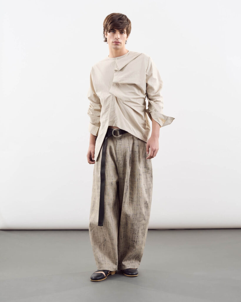 Each piece, he says, reflects their shared philosophy of “intentional design” or clothes that adapt to the wearer rather than demand perfection. The asymmetry isn’t for shock value, it’s a metaphor for life itself: dynamic, imperfect, endlessly changing.
