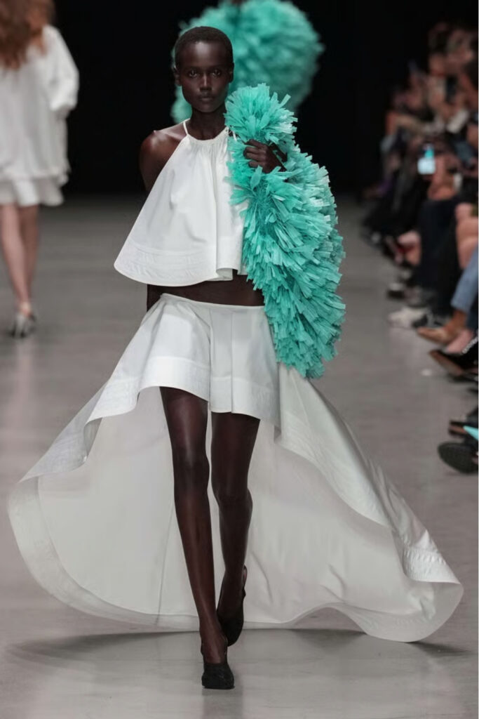 Titled “Come Together,” Stella McCartney’s Spring/Summer 2026 collection is grounded on humans, animals, and the environment. It ditched leather, fur, and exotic skins for world-first fabrics invented by the designer: Fevvers, which is a plant-based alternative to feathers, and Pure.Tech that is made from nature-based materials and programmed to absorbs pollutants in the air.