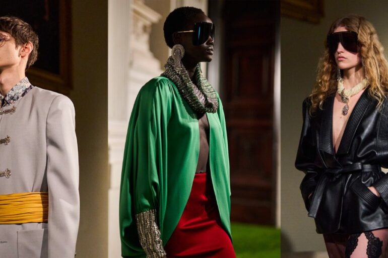 Completing the ensemble is a handpicked selection of jewelry awaits. Under the creative direction of Delfina Delettrez Fendi, the astrological signs are reimagined as sleek charms, perfect for mono-earrings or necklace pendants adorned with delicate crystal studs. When combined, these twelve charms form a captivating statement necklace. The collection also features bold fabric bracelets adorned with zodiac signs and archive signatures, harmonizing perfectly with the ready-to-wear lineup. For gentlemen seeking a personalized touch, silver rings and necklaces are available, allowing the addition of an enamel fiche embellished with the wearer’s star sign in-store.
