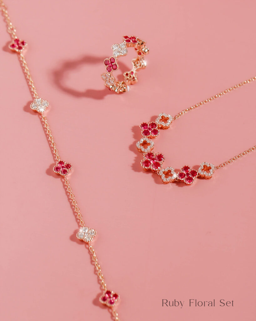 My Diamond’s Holiday 2025 Collection brings together colored gemstones like ruby, sapphire, emerald, and white diamond set in yellow, white, or rose gold. Designs include subtle clover-inspired shapes and clean, wearable forms that can go from everyday use to special occasions.