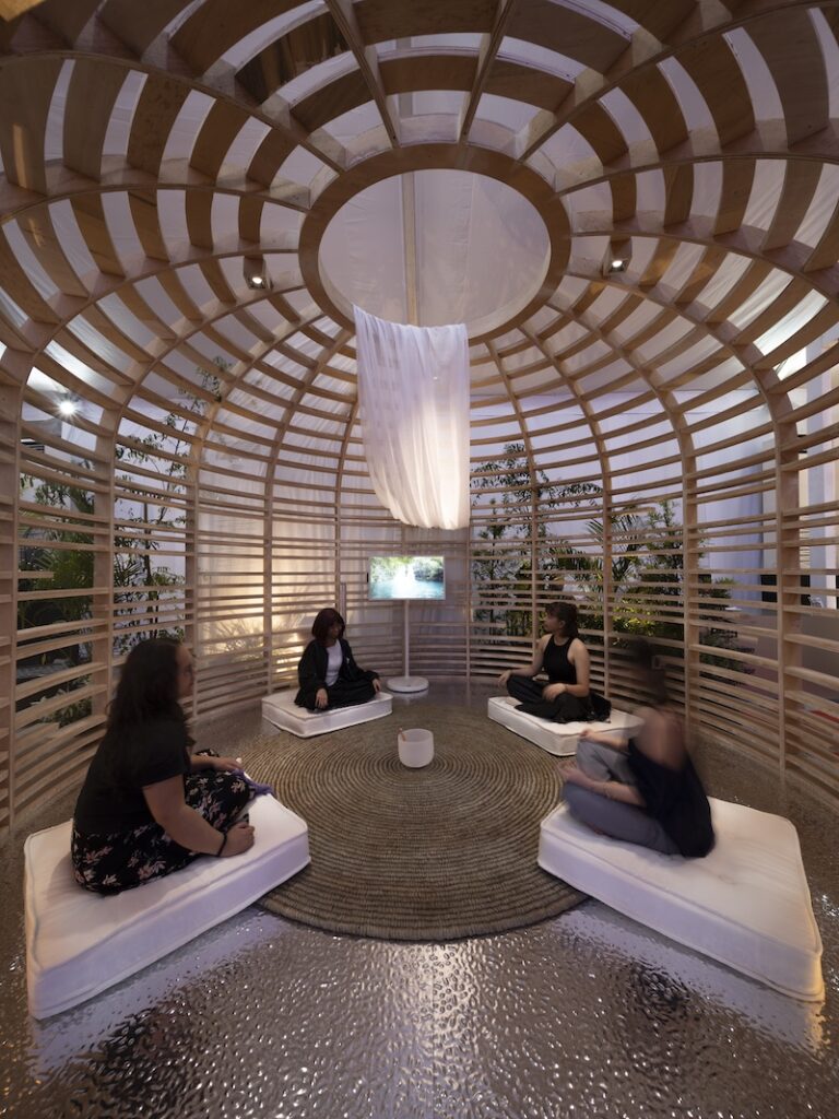 “What matters is not the size but the intention behind it. HINGA could take the form of a quiet pavilion, a contemplative room, a garden sanctuary, or simply a moment of pause within a larger architectural environment. The interactions that happen in the space are intentionally gentle–meditation, breathwork, sound healing, quiet reflection, journaling, or simply sitting in silence. These are not programmed activities, but invitations.”