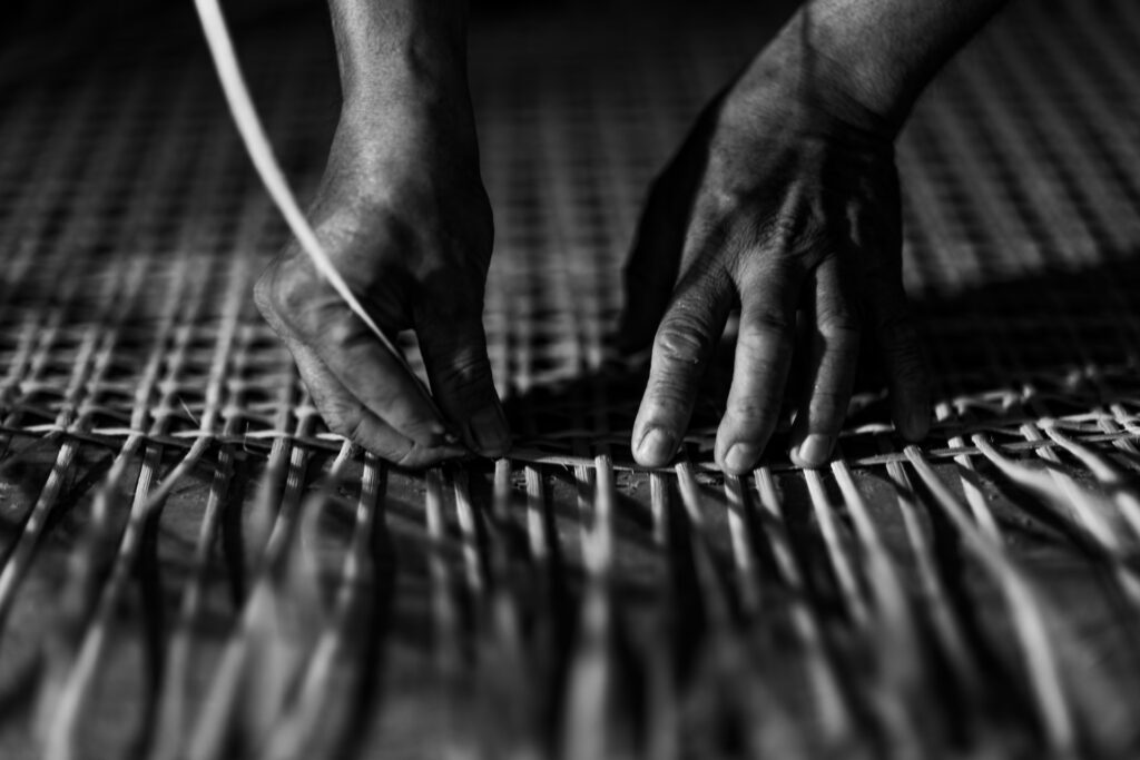 “Everything is still handmade,” he says, emphasizing that aside from the wood components, weaving remains entirely manual. The materials they use are rattan, abaca, lampakanay and seagrass. “Lampakanay is a type of seagrass that grows in swampy areas. They harvest it, dry it out, remove the core and turn the fiber into rope. It’s sturdy, very smooth.”