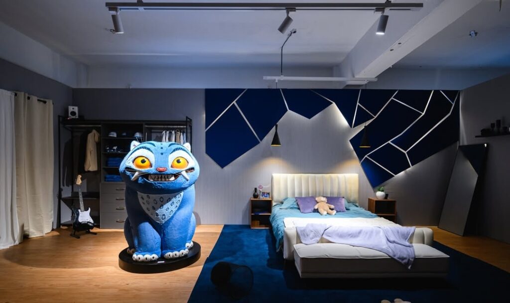 Outside the building, you’ll find Derpy and Susie— Jinu’s pet tiger and magpie—perched on top to welcome fans into their world. The adventure begins inside a showroom on the third floor, where Derpy is the main star. The lovable, clumsy tiger brings his irresistible charm to blankets, fabric posters, bags, keychains, magnets, and T-shirts.