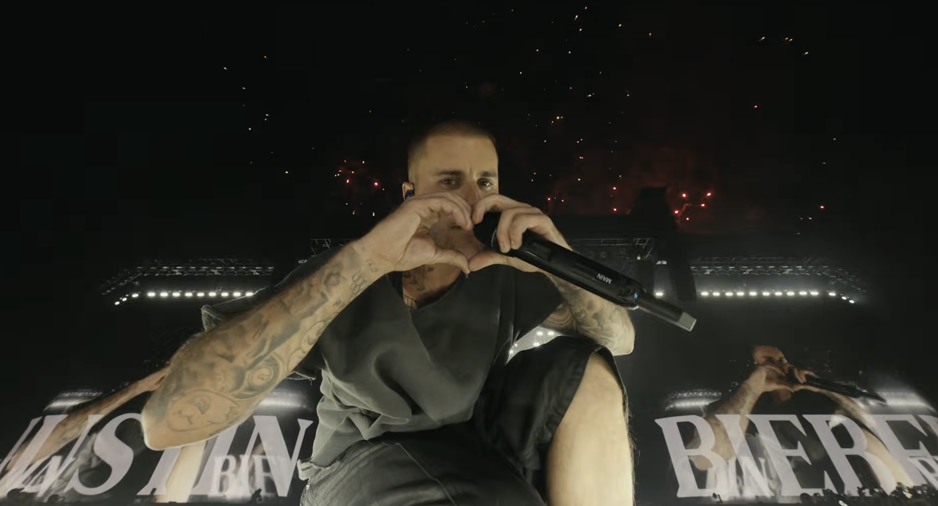 Justin ended his headlining set at Coachella in a low angle frame with fireworks painting the desert sky.